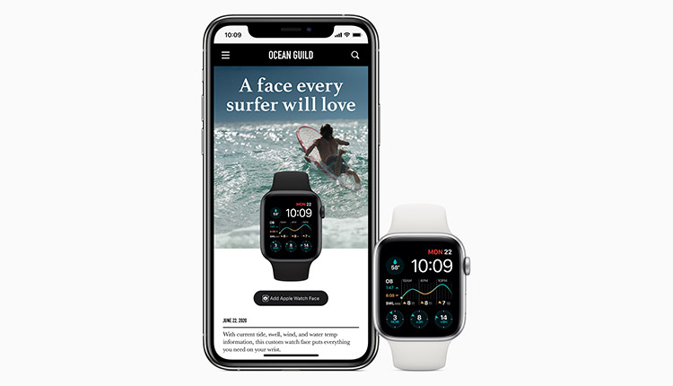 Faces are central to the watch experience, providing customers with valuable information at a glance and the ability to personalize their Apple Watch. watchOS 7 offers new ways to discover and share unique combinations to completely configure the watch face to suit any activity or lifestyle, from the new parent to the surfing aficionado, tennis player, or photographer. Infinitely customizable and personalized faces, inclusive of complications, can be shared through Messages or Mail, and discovered through the App Store or even from links through websites and social media channels.
