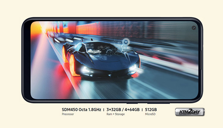 Starting with the screen, this device has a 6.4-inch IPS LCD display that has HD + resolution and adopts the hole punch to accommodate the front camera of only 8 MP. It is powered by a Qualcomm Snapdragon 450 chipset.